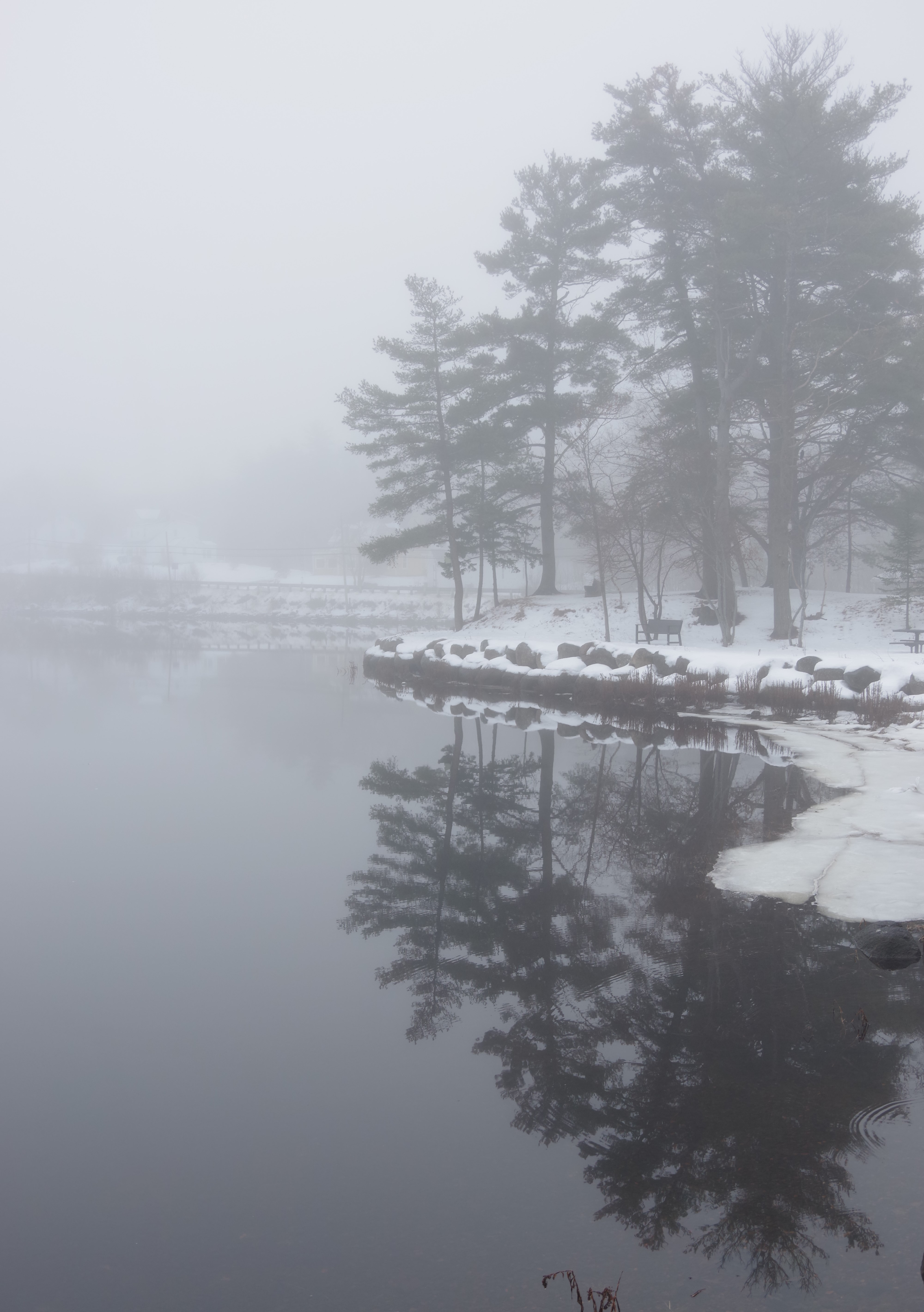 The following pics where taken this morning down at a very quiet, still and foggy LaHave River.